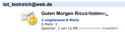 Jetzt sind wir mit der Anmeldung der E-Mailadresse auch schon durch und Web.de hat uns bereits zwei E-Mails geschickt.
